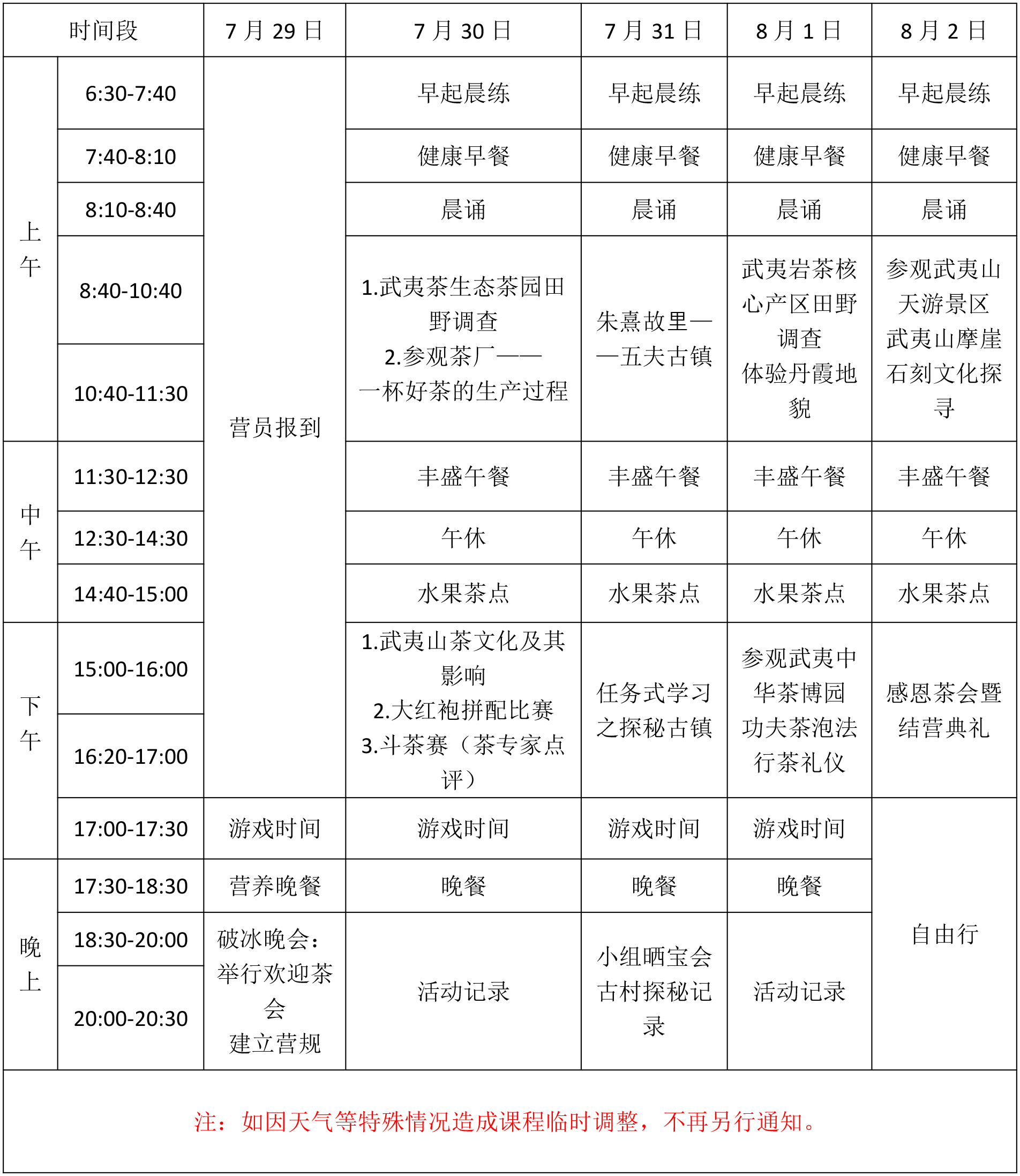 孩子们自己建立营规,任务式学习,制作一份属于自己的武夷山记录;有节奏的营地生活,晨诵开启每一天;建立亲子学习圈,活动前中后,交流互动,共享快乐。