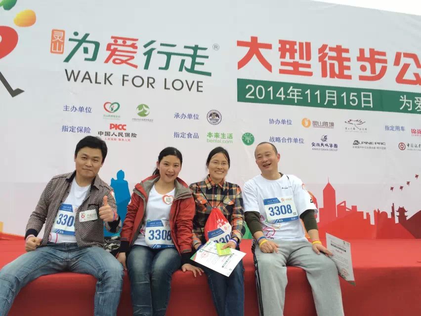 2014年11月15日,太湖之滨,灵山脚下,亲近母语公益派出40人团队参加“为爱行走·善行无锡”徒步公益活动,和来自全国各地的三千余名爱心人士共同为爱挑战、为爱而行。当日,亲近母语公益所有小队圆满完成25公里行走挑战,其中“田家炳”小队荣获25公里挑战队行走第一,“阡陌”小队目前完成8100元筹款任务,总额位列所有灵山行走小队第一名。
